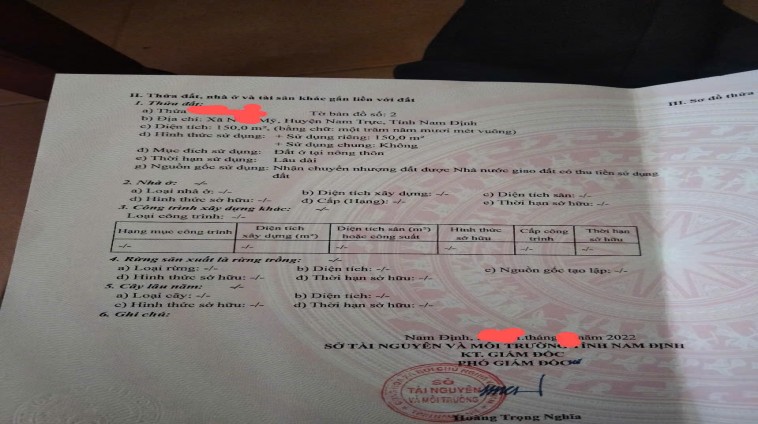 Tôi đang bán lô đất tại xã Nam Mỹ, huyện Nam Trực, Nam Định, với diện tích 150m², mặt tiền 10m, chiều sâu 15m. Lô đất nằm trong khu vực dân cư đông đúc, nhiều nhà mới xây dựng, rất thuận tiện cho việc sinh sống và phát triển kinh doanh.
