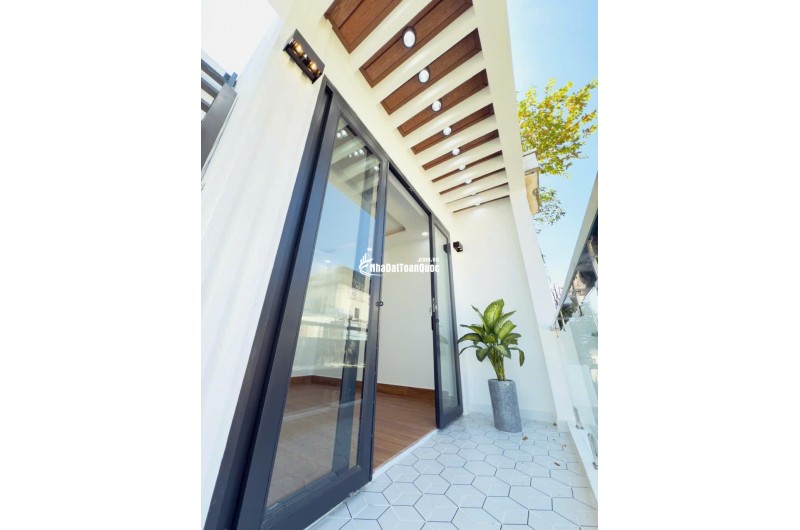 Ngôi nhà góc này không bị lộ giới và có đường quy hoạch trước nhà rộng 16m, mang lại sự thoáng đãng và thuận tiện. Kết cấu nhà gồm 1 trệt, 2 lầu và 1 sân thượng, thiết kế hiện đại rất thích hợp để ở hoặc kinh doanh.